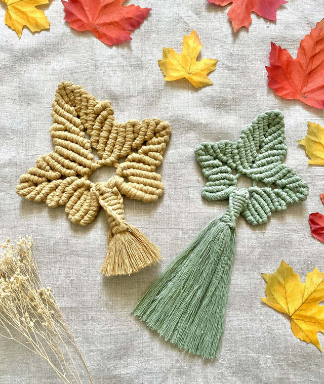 Feuille d’érable en macramé moutarde, une création artisanale qui capte l’esprit de l’automne avec ses tons chauds et lumineux. Sa couleur moutarde apporte chaleur et caractère, idéale pour compléter une décoration de saison. À poser sur une table, une étagère ou à intégrer dans une composition automnale, cette feuille en macramé est parfaite pour créer une ambiance naturelle, cosy et tendance.